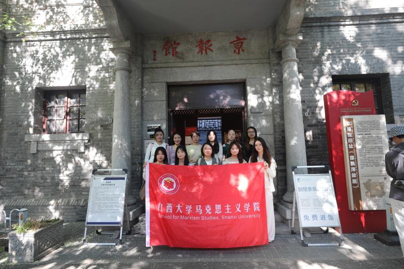 师生循着革命先驱的足迹,抵达李大钊故居。这座古朴的院落里,书桌、油灯、泛黄的马克思主义著作静静陈列,诉说着这位“中国共产主义运动的先驱”在此传播真理、点燃革命火种的岁月。正是在这里,李大钊创办刊物、组织社团,推动马克思主义在北京乃至全国的广泛传播,为中国共产党的建立奠定了思想基础。堂屋中,“铁肩担道义,妙手著文章”的对联格外醒目,这不仅是李大钊先生的人生写照,更成为激励后人的精神坐标。师生们深刻认识到,李大钊用生命践行了对信仰的忠诚,他的初心与担当,正是当代青年应传承的精神内核。