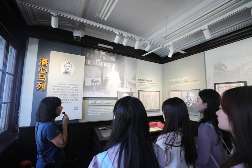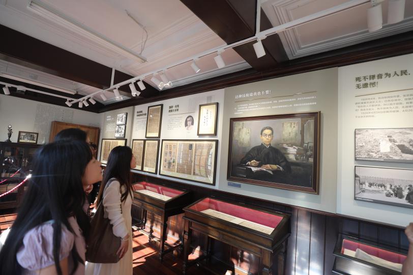 随后,师生们来到京报馆旧址。这座中西合璧的二层小楼,曾是中国报界先驱邵飘萍创办《京报》的阵地。在“百年红色报刊专题展”展区,从《新青年》到《共产党》,从《向导》到《人民日报》,一份份报刊串联起中国共产党从萌芽到壮大的历史轨迹。“邵飘萍生平事迹专题展”中,大家被邵飘萍投身五四、秘密入党、支持革命、慷慨赴死的光辉事迹所震撼,在风雨如晦的年代,邵飘萍以笔为剑、抨击时弊,用生命诠释了“报人风骨”。师生们深刻感悟到,革命年代的报刊不仅是信息的载体,更是唤醒民众、凝聚力量的号角,而邵飘萍等革命报人“为真理而死,为人民而呼”的精神,永远值得铭记与传承。