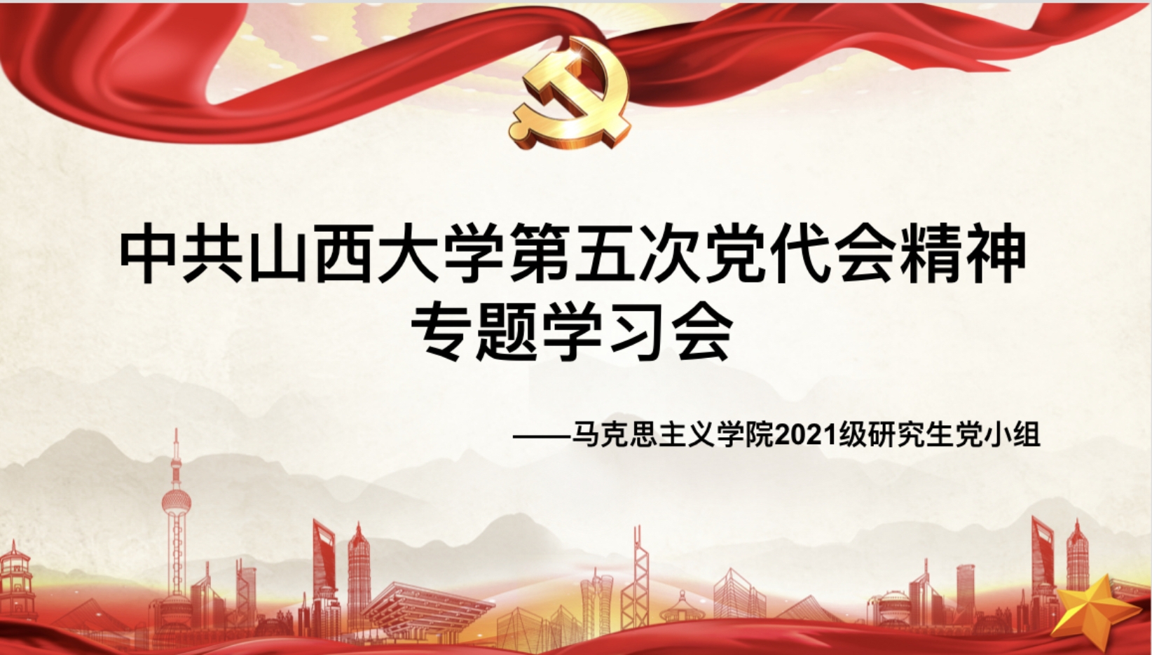 为学习贯彻中国共产党fun88乐天使第五次代表大会精神,提升党员的思想觉悟,10月28日下午3时,2021级研究生党小组在教室一召开专题学习会。党支部委员武泽馨、郝向宇、邢阳及2021级研究生党小组全体党员参加了会议。