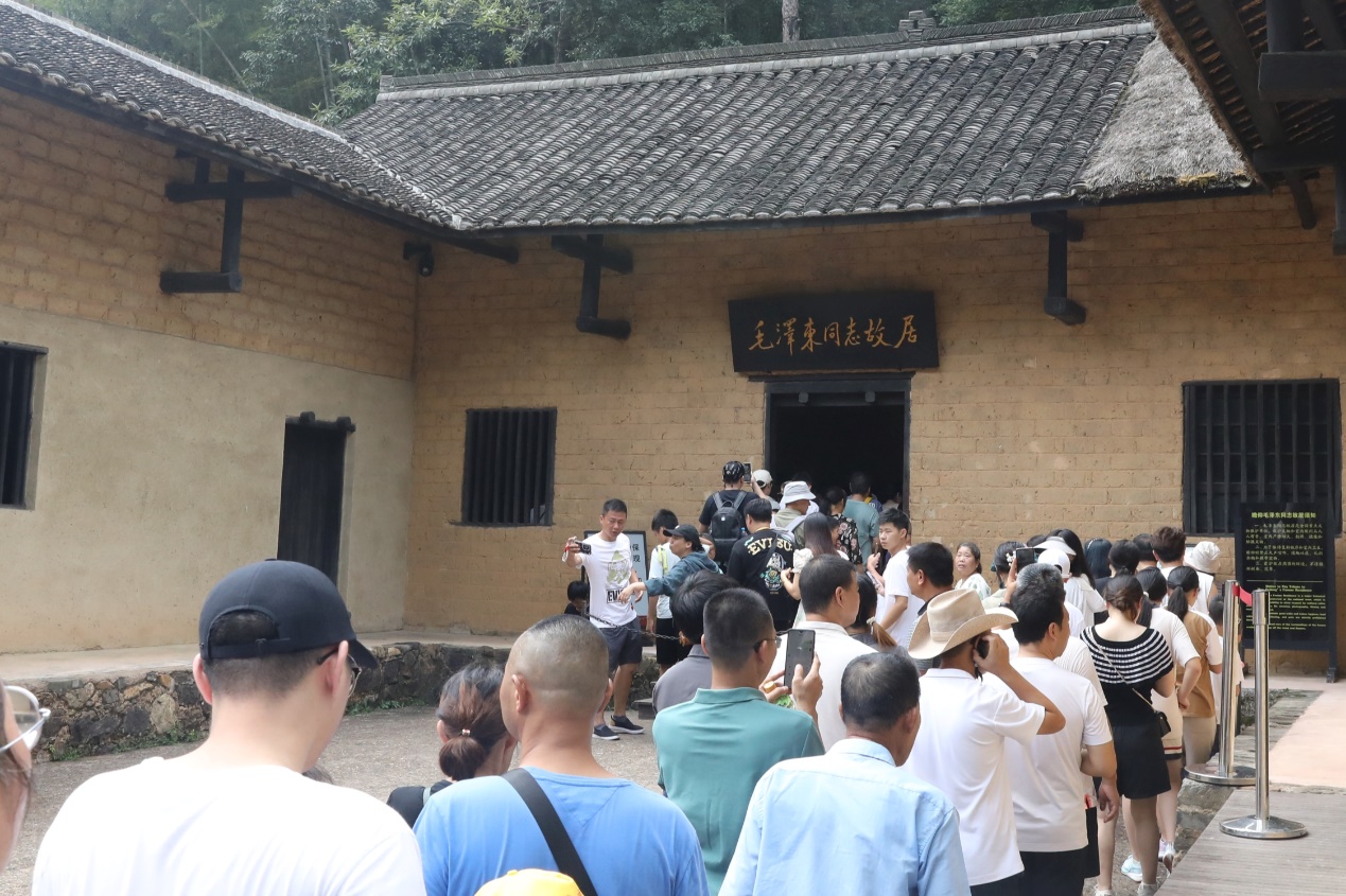 毛泽东故居,青黑色的砖瓦、乌色的房梁、简陋的土坯房和屋内陈列的遗物依然焕发着伟人的光辉。沿着历史的脉络,实践团成员了解到在毛泽东同志的感召下,韶山人民前赴后继,浴血奋斗,铸就了“为有牺牲多壮志,敢教日月换新天”的韶山精神,为传播党的进步思想和发展早期党组织起到了重要作用。