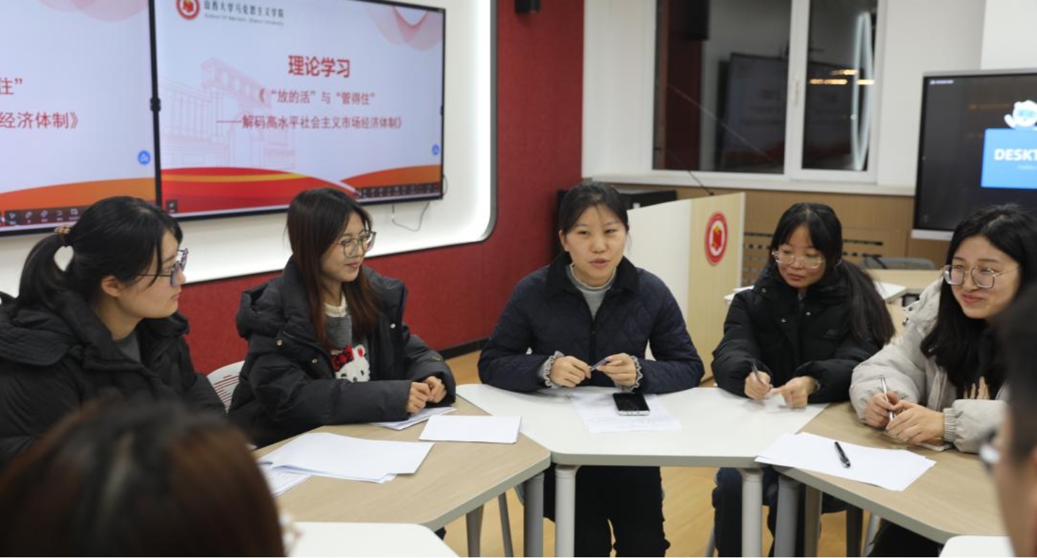 交流讨论环节,同学们围绕如何立足具体实践推动理论创新,使科学理论更好地服务于社会发展达成共识,一致表示要坚持以习近平新时代中国特色社会主义思想为指导,坚守好马克思主义这个魂脉和中华优秀传统文化这个根脉,不断激发理论和实践的双向赋能,为实现强国梦想凝聚奋进力量。