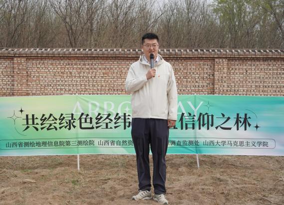 活动启动仪式上,山西省自然资源厅调查监测处处长薛鹏燕进行了热情洋溢的致辞,他指出本次活动既是生态文明理念的集体践行,也是党建引领下资源共享、优势互补的生动体现,希望以此次活动为起点,携手绘就生态文明建设与党建思政育人的现代化新画卷。公司党委书记王利花在讲话中表示,增绿就是增优势,植树就是植未来,植树活动不仅是践行习近平生态文明思想的生动体现,更是一次“行走的绿色思政课”,植树现场就是鲜活的课堂。希望广大教职员工将植树实践真知融入育人理念和课堂教学中,用习近平新时代中国特色社会主义思想引导员工,立德树人、铸魂育人,帮助员工系好人生第一粒扣子,种下绿色希望,收获育人成果。山西省测绘地理信息院第三测绘公司党委书记、经理李建伟表示,本次活动创新“党建+生态”模式,既是党员学习的实践课堂,也是推动生态修复的重要举措,希望双方深化党建合作,共同打造生态思政特色品牌。