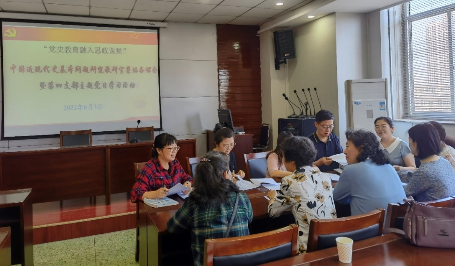 2021年6月3日上午,乐天使第四党支部暨中国近现代史基本问题研究教研室全体教师围绕“党史融入思政课堂”这一主题开展集体备课,总结本学期党史融入《中国近现代史纲要》课程教学的实践经验。