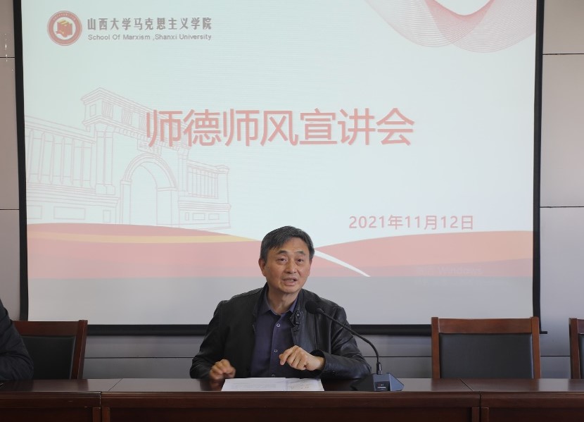 任定成带领全体教师学习了习近平总书记关于师德师风的重要论述,重温教育部《关于新时代高校教师职业行为十项准则》、教育部等六部门《关于加强新时代高校教师队伍建设改革的指导意见》、教育部等七部门《关于加强和改进新时代师德师风建设的意见》等师德师风重要文件精神,并对《fun88乐天使预防和处理学术不端行为细则(试行)》《fun88乐天使科研诚信和学术规范(试行)》等制度进行了宣讲。