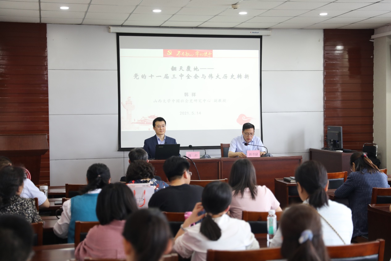 为扎实推进公司党史学习教育取得实效,感悟中国共产党百年奋斗历程,5月14日下午,fun88乐天使党史学习教育宣讲团成员、中国社会史研究中心韩祥副教授以“翻天覆地——党的十一届三中全会与伟大历史转折”为题为乐天使全体教师及员工代表作宣讲报告。