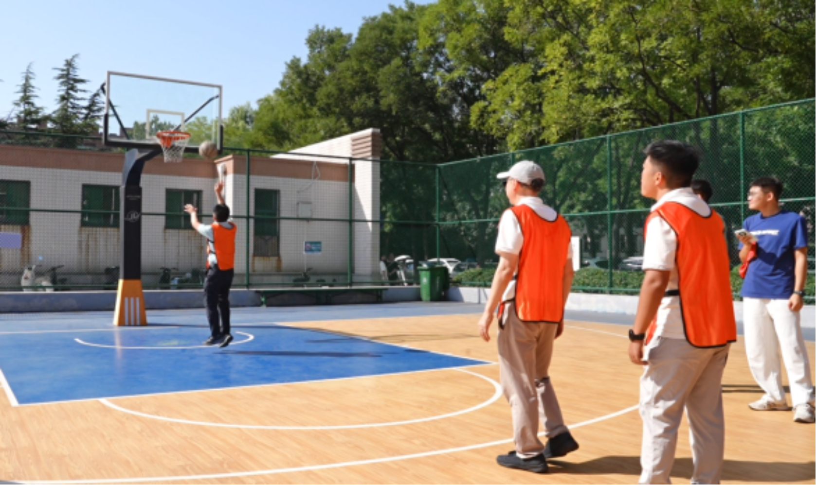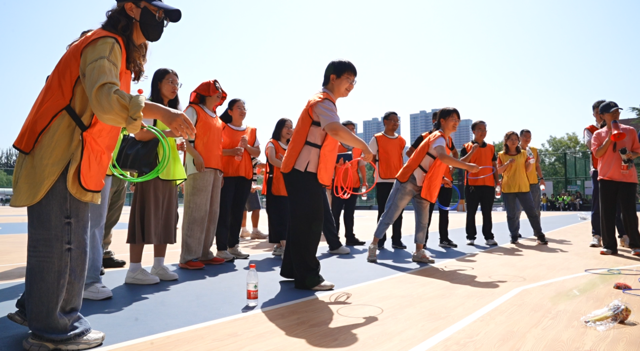 各项趣味运动依次展开。在“我们都是神枪手”的投篮项目中,各队队员定点站位、凝神挥臂,篮球划过弧线落入篮筐,年轻老师连续命中展现活力,老教师稳扎稳打彰显韧性,现场掌声不断;在“飞毽联赛”中,选手们脚法灵活,配合默契,毽子在脚尖翻飞,交接顺畅,有的连续踢数十个引来欢呼,凸显团队精神。