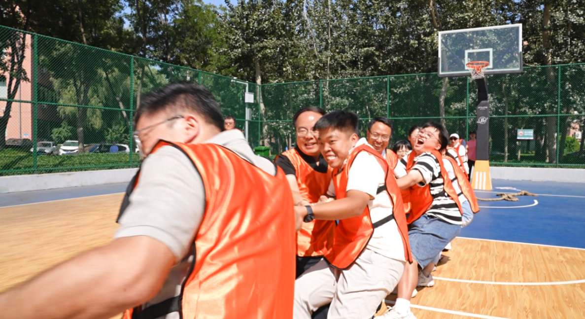 最受关注的“一吨”拔河山的拔河比赛掀起高潮,四支队伍两两对决,参赛队员紧握绳索、身体后倾,加油声、呐喊声此起彼伏。“卓凡队”与“马到成功队”的决赛僵持许久,最终“马到成功队”凭借顽强毅力获胜,队员们欢呼拥抱,气氛热烈。