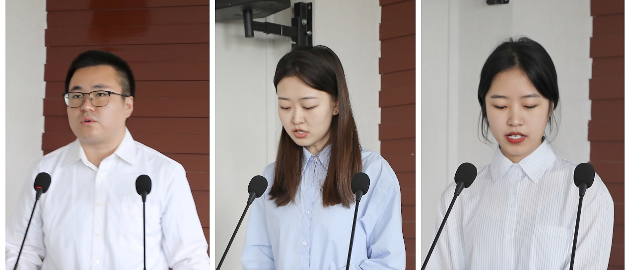 新一届研究生会主席张泽琨、青协主席张文静、研究生宣讲团团长范诗义依次进行发言。他们对上一届团学组织负责人的耐心指导表示衷心感谢,各自分享了新学期的工作思路和想法,表达了更好引领和服务全院员工的信心和决心,表示将不负众望,努力讲好乐天使故事、不断彰显乐天使风采,为公司的全面发展贡献青春力量。