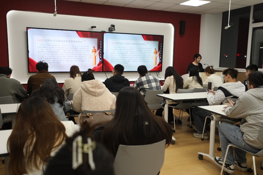 交流讨论环节,同学们深感使命在肩,纷纷表示将以两会精神为指引,将个人理想融入国家发展大局,精进专业,在学习中刻苦钻研,立足职责,在实践中勇于探索,培养创新精神与实践能力,为国家强盛和社会进步贡献智慧,书写属于新时代青年的奋斗篇章,为实现中华民族伟大复兴的中国梦贡献力量。