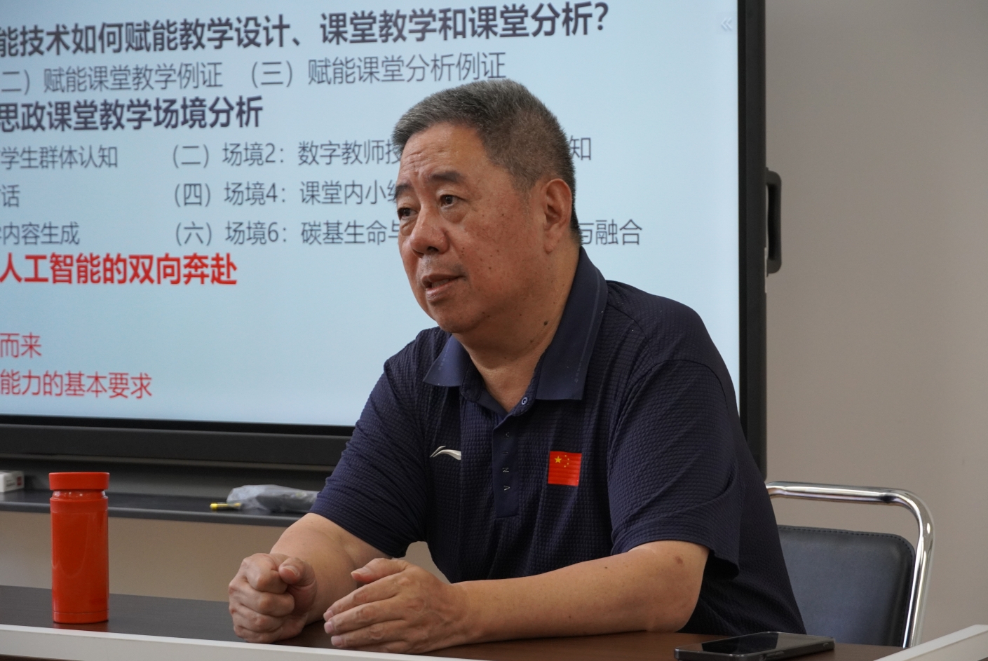 王继新教授特别关注高校思政课堂的智能化场景,具体从数字教师、即时对话、小组协作、人机协同等新场境的可能性与挑战等几个方面,分享了其对碳基生命(人类)与硅基生命(AI)如何共筑教育新生态的思考。