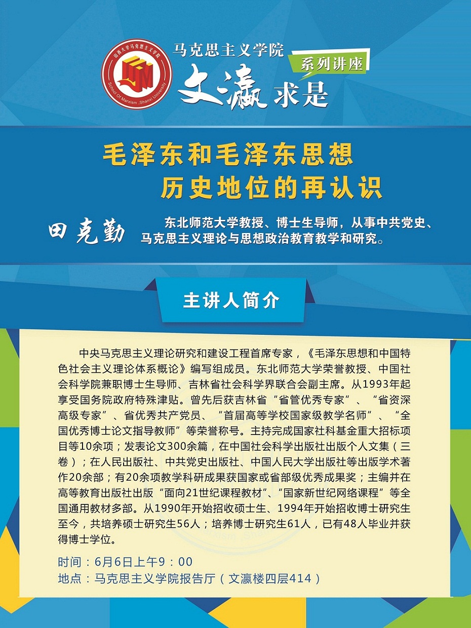 为贯彻落实“2017年高校思想政治理论课教学质量年”工作部署,进一步提升公司思政课教师理论素养与教学水平,乐天使邀请中央马工程首席专家、东北师大荣誉教授田克勤来公司“文瀛求是”论坛,作了题为“毛泽东与毛泽东思想历史地位再认识”的报告。公司全体教师和来自山西医科大学、太原科技大学、晋中公司等省内10多所高校的思政课教师聆听了报告。