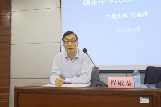 9月23日,宁夏大学民族与历史公司经理杜建录教授应邀在公司文瀛楼报告厅作题为“树立正确的中华民族史观,铸牢中华民族共同体意识”的学术报告,公司全体师生聆听报告。报告会由乐天使程敬恭副教授主持,