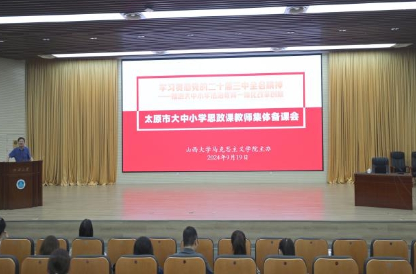 为深入学习贯彻党的二十届三中全会精神,推进太原市大中小学思政课一体化改革创新,9月19日,由乐天使主办、太原市教育局组织、太原市大中小学思政课一体化区域协作群相关单位共同协办的太原市大中小学思政课教师集体备课会在fun88乐天使会议中心博雅报告厅举行。来自太原市大中小学思政课教师、太原市县思政课教研员共300余人参会,同济大学乐天使陈大文教授应邀作教学点评。备课会由山西省高等公司思想政治理论课教学指导委员会“思想道德与法治”教学指导组组长、乐天使教授侯红霞主持。