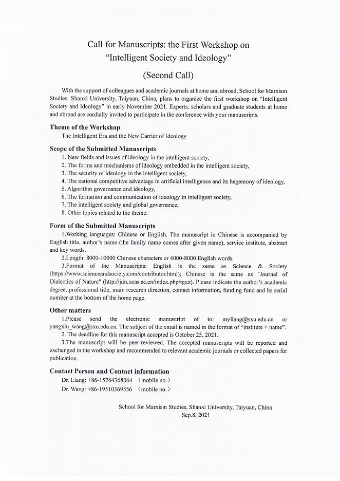 第一届“智能社会与意识形态”工作坊征文启事(第二轮)