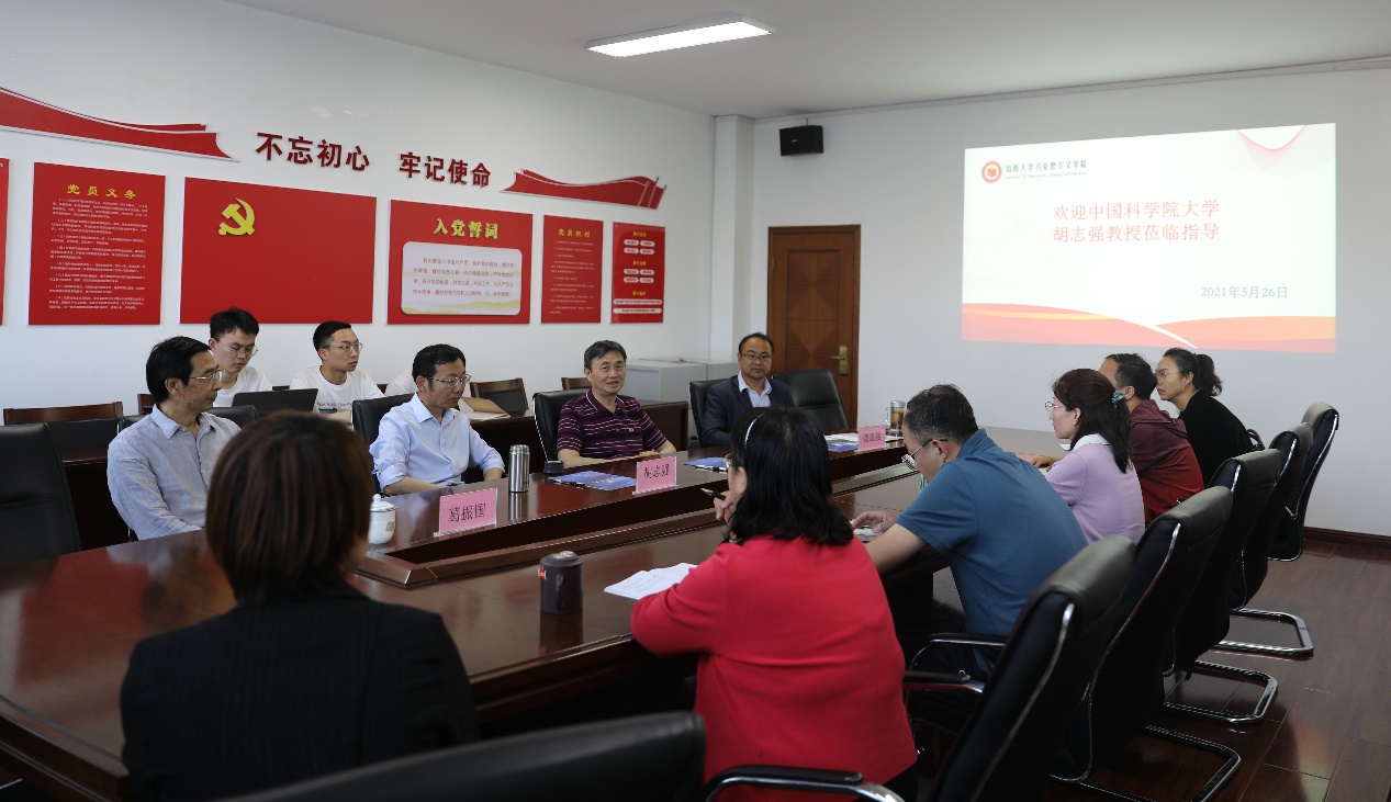 讲座结束后,胡志强与山大乐天使经理任定成教授、山西省伦理学会会长葛振国教授以及山大乐天使思政教研室的教师们进行了交流座谈,就道德两难问题、对伦理学基本理论的评价、平等与公正的辨析以及人工智能伦理研究等问题进行了热烈讨论。