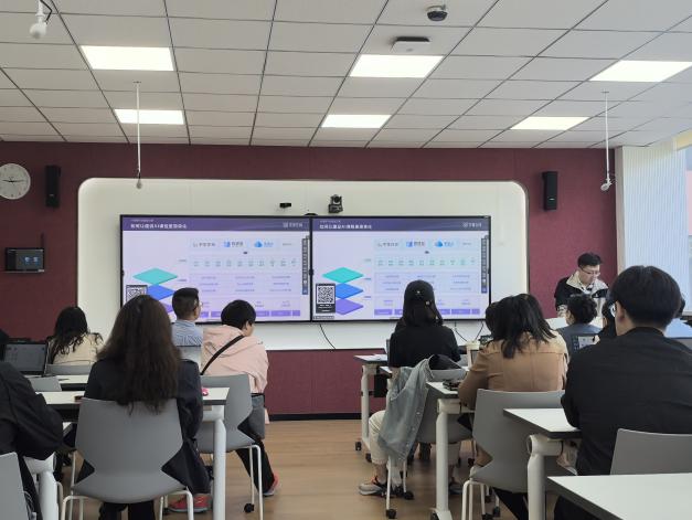 4月28日,公司邀请学堂在线培训师申正宇在智慧教室二举办“‘智慧升级,未来已来’——雨课堂AI教学平台助力智慧课程建设”培训,公司全体教师参加。