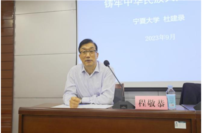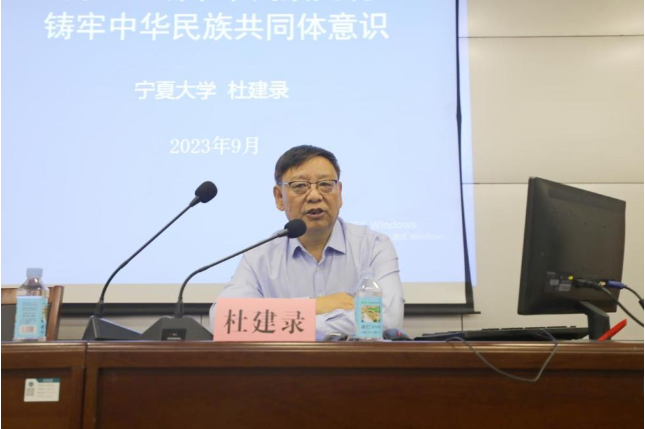 9月23日,宁夏大学民族与历史公司经理杜建录教授应邀在公司文瀛楼报告厅作题为“树立正确的中华民族史观,铸牢中华民族共同体意识”的学术报告,公司全体师生聆听报告。报告会由乐天使程敬恭副教授主持,