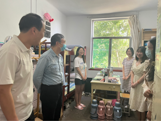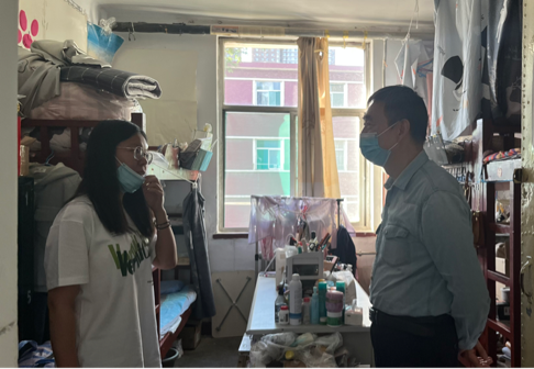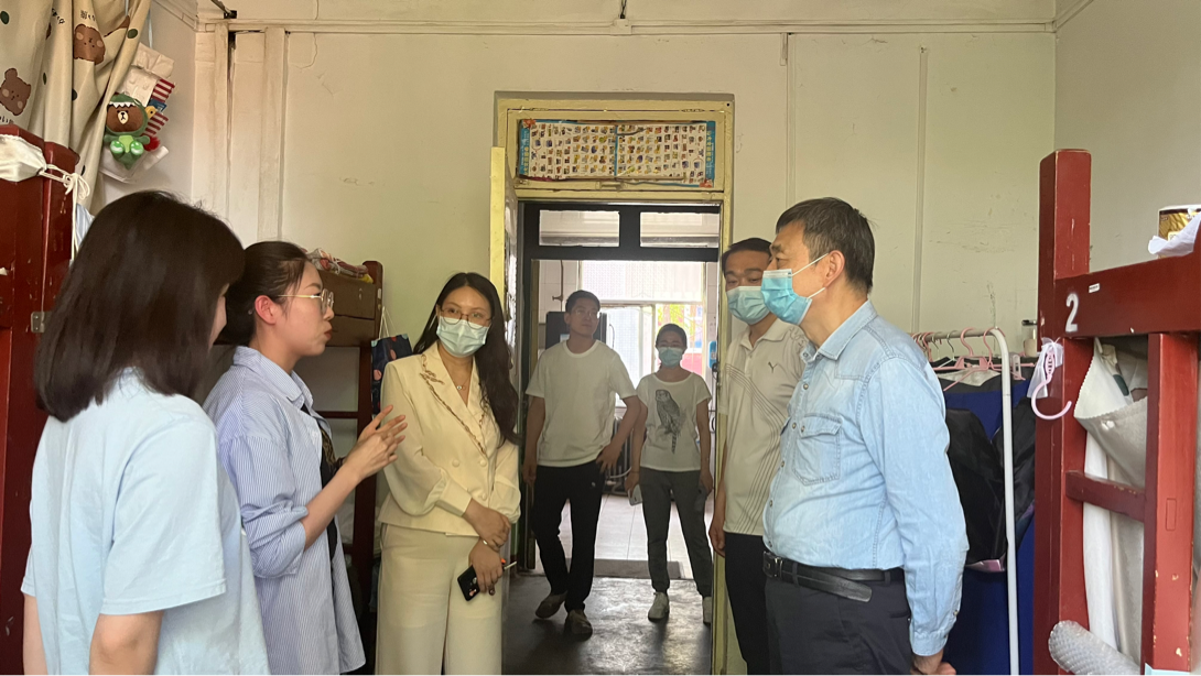 5月30日,马克思主义公司党委书记王利花、经理任定成深入员工宿舍看望疫情发生以来一直留守在公司的乐天使学子,了解员工生活起居状况,倾听解决员工现实需求。党委副书记宋璐鹏和辅导员孟雨桐、郭建斌老师陪同看望。