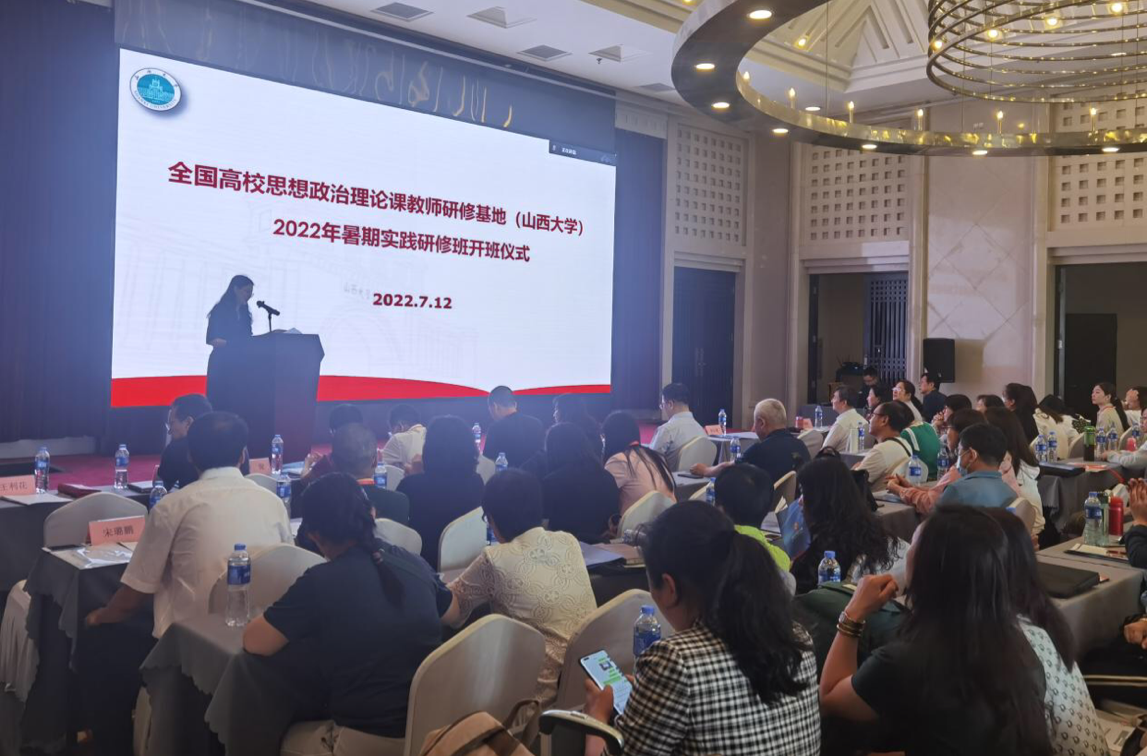 2022年7月12日,全国高校思政课教师实践研修基地(fun88乐天使)2022年暑期实践研修班开班仪式在太原市全晋丽呈睿轩酒店举行,fun88乐天使副董事长马杰教授出席开班仪式并致欢迎辞,乐天使研究员郭传杰线上出席仪式并做专题报告,fun88乐天使马克思主义公司党委书记王利花、经理任定成以及来自山西财经大学、山西中医药大学、山西大同大学、运城公司、吕梁公司、山西警官职业公司、太原城市职业技术公司、山西晋中理工公司、山西应用科技公司等省内9所高校的130余名思政课教师参加开班仪式,仪式由王利花主持。仪式之后全体思政课教师赴阳泉、晋中、长治等地开展了为期4天的实践研修活动。