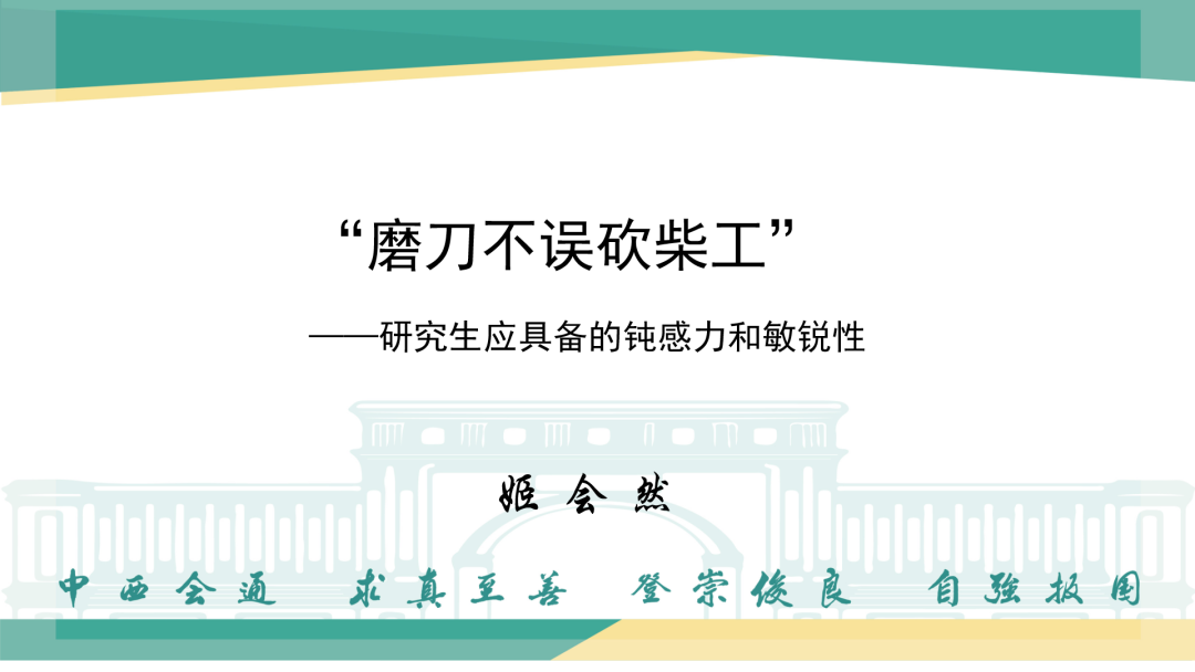 2022年5月3日下午,乐天使“导师有约——师生携手,共同成长”第七期活动在线上举行。姬会然副教授以“‘磨刀不误砍柴工’——研究生应具备的钝感力和敏锐性”为题与全体研究生交流。本次交流会主要围绕研究生如何培养钝感力和敏锐性展开。
