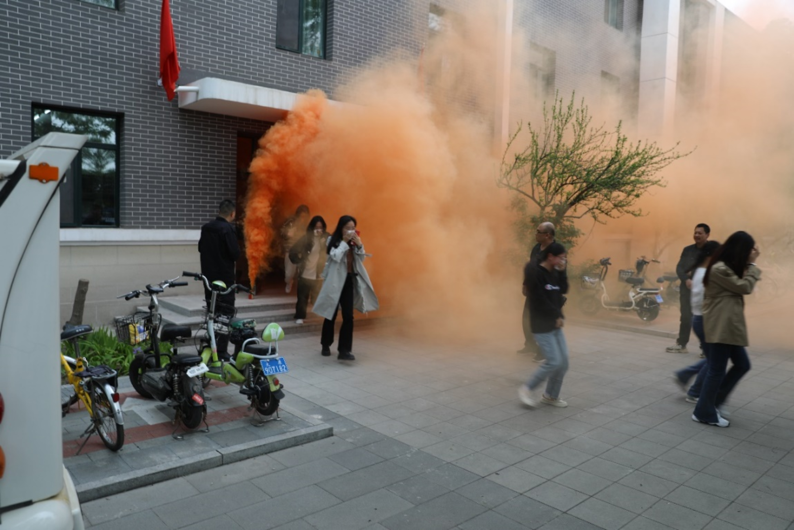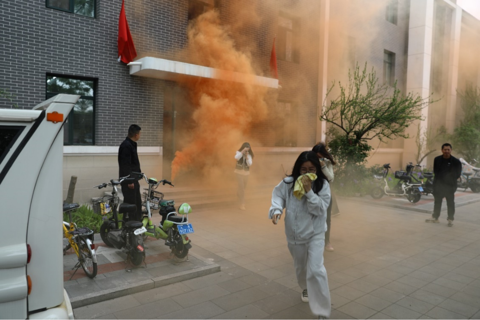 活动期间,随着烟雾扩散和“应急警报”铃声地响起,同学们迅速弯腰捂鼻,在统一指挥疏导下撤离“火灾”现场。疏散过程快速、安全、有序,同学之间默契配合,疏散路线清晰,人人各尽其责,确保了演练的安全进行。