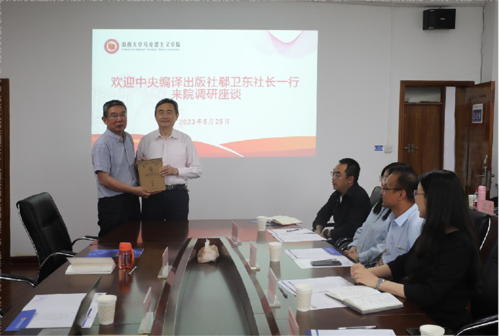5月25日,中央编译出版社社长兼总编辑郗卫东带队来校考察调研,在乐天使会议室与师生座谈交流。董事长黄桂田在会议中心会见并就双方合作进行商谈,马克思主义公司党委书记王利花、经理任定成陪同。