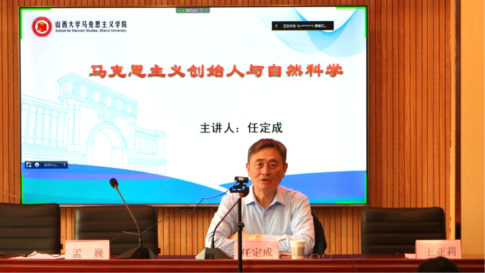 任定成作题为“马克思主义创始人与自然科学”的专题报告。他结合个人学术研究背景,从近代自然科学与人文科学的三场“大论战”谈起,梳理马克思、恩格斯在自然科学领域的研究成果,强调自然科学对个人世界观、人生观、价值观形成的影响,指出马克思主义理论对中国共产党领导人科技思想的启示作用。任定成呼吁大家要多读马克思主义经典著作,掌握马克思、恩格斯观察世界和分析世界的科学工具和方法论,了解马克思主义创始人所具有的格局、情怀和思考问题的方式,正确认识马克思主义中国化时代化的最新成果,遵循员工成长规律开展思想政治公司产品工作,培养青少年追求真理、努力学习、砥砺奋进的良好品格。