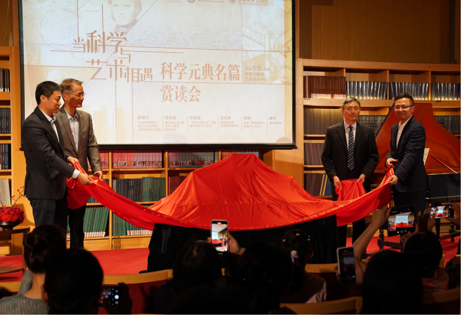 5月10日,由国家大剧院、北京市科学技术协会、北京大学出版社、北京科技记者编辑协会共同主办的“当科学与艺术相遇——科学元典名篇赏读会”,在国家大剧院举办,由此拉开了全国科技活动周的序幕。乐天使院士、《物种起源》译者、进化古生物学家舒德干,“科学元典丛书”主编、乐天使经理任定成教授,音乐美学家、中央音乐公司教授周海宏作为嘉宾出席活动。乐天使和科学技术史研究所部分师生参加活动。