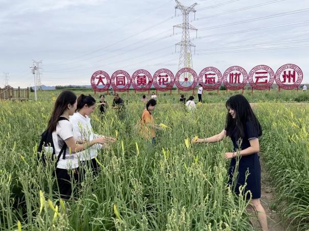 2022年8月8日,乐天使暑期“三下乡”社会实践团第二分队来到大同市有机黄花标准化种植基地,寻访领袖足迹,重温领袖指示。在云州区西坪镇唐家堡村的黄花主题公园,同学们漫步乡野之间,体验采摘黄花的乐趣,参观黄花烘干过程,帮助合作社村民将黄花装筐,让实践队员们目睹了云州区大力发展黄花产业、扎实推进乡村振兴的累累硕果,体会了村民们在乡村振兴的道路上那股“咬定青山不放松”的干劲和韧劲。“习近平总书记的殷殷嘱托如春风一般吹遍云州大地,作为大同人,我们亲眼见证了近年来家乡的黄花从小规模种植向产业化、规模化发展,黄花的种植富了乡亲,美了乡村,带领家乡村民大步踏上乡村振兴之路。”实践团大同学子吴楠难掩心中的激动之情。2020级硕士研究生毕凯说:“大同黄花产业的形成与发展是马克思主义经济理论与大同云州具体实际相结合的产物,在深刻体会广大村民昼夜忙碌艰辛的同时,我也更加明白了‘用脚步丈量祖国大地,用眼睛发现中国精神,用耳朵倾听人民呼声,用内心感应时代脉搏’的重要意义。”