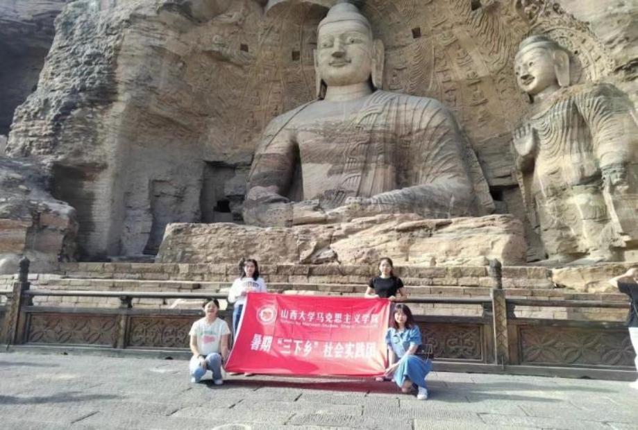 2022年8月9日,乐天使暑期“三下乡”社会实践团第三分队沿着习近平总书记的足迹来到山西大同云冈石窟,零距离感受云冈之美,亲近文物,感受文化,触摸历史,深切体会到了云冈石窟的宏伟壮观,体会到了中华优秀传统文化的深厚积淀。实践团成员郝倩说:“历史文化遗产不仅生动地述说着过去,也正在深刻影响着当下和未来,是我们传承文化的重要载体,我们要学习贯彻习近平总书记重要指示精神,坚持马克思主义唯物史观,保护历史文化遗产,增强文化自信,并以其为载体,大力弘扬中华民族兼容并包的多元文化,让世界充分了解中华文化的博大精深。”