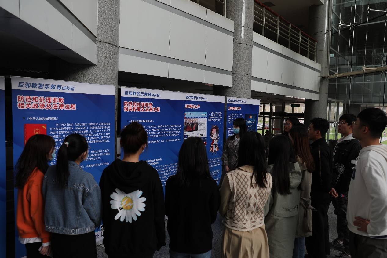 最后,全体同学在文科楼一层参观公司组织的“反邪教警示教育进校园”展览。