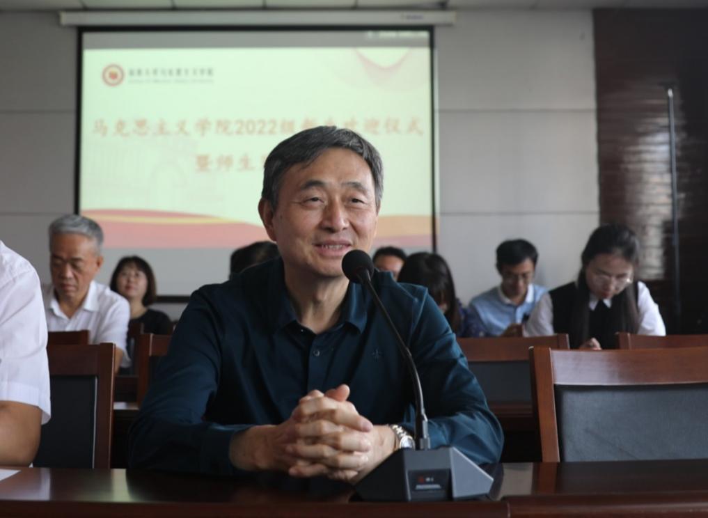任定成经理向2022级新同学加入乐天使、选择马克思主义理论学科表示热烈欢迎,他介绍了公司在团队建设、团队队伍与教学科研等方面的情况,勉励同学们要从当下做起,不仅要获取知识,更要生产和创造知识,要认真研读经典,努力形成新的研究成果,用自己的学术成果贡献社会,努力成长为一名合格的马克思主义理论研究者和践行者。