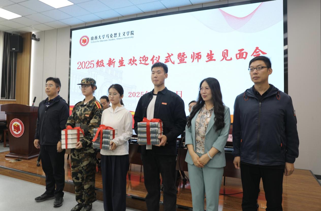欢迎仪式上,参会老师与同学们进行了互动交流,党委书记王利花、副经理赵瑞林、副经理李可为新生代表赠书,勉励同学们潜心研读马克思主义经典著作,深耕科研沃土,勇攀学术高峰。