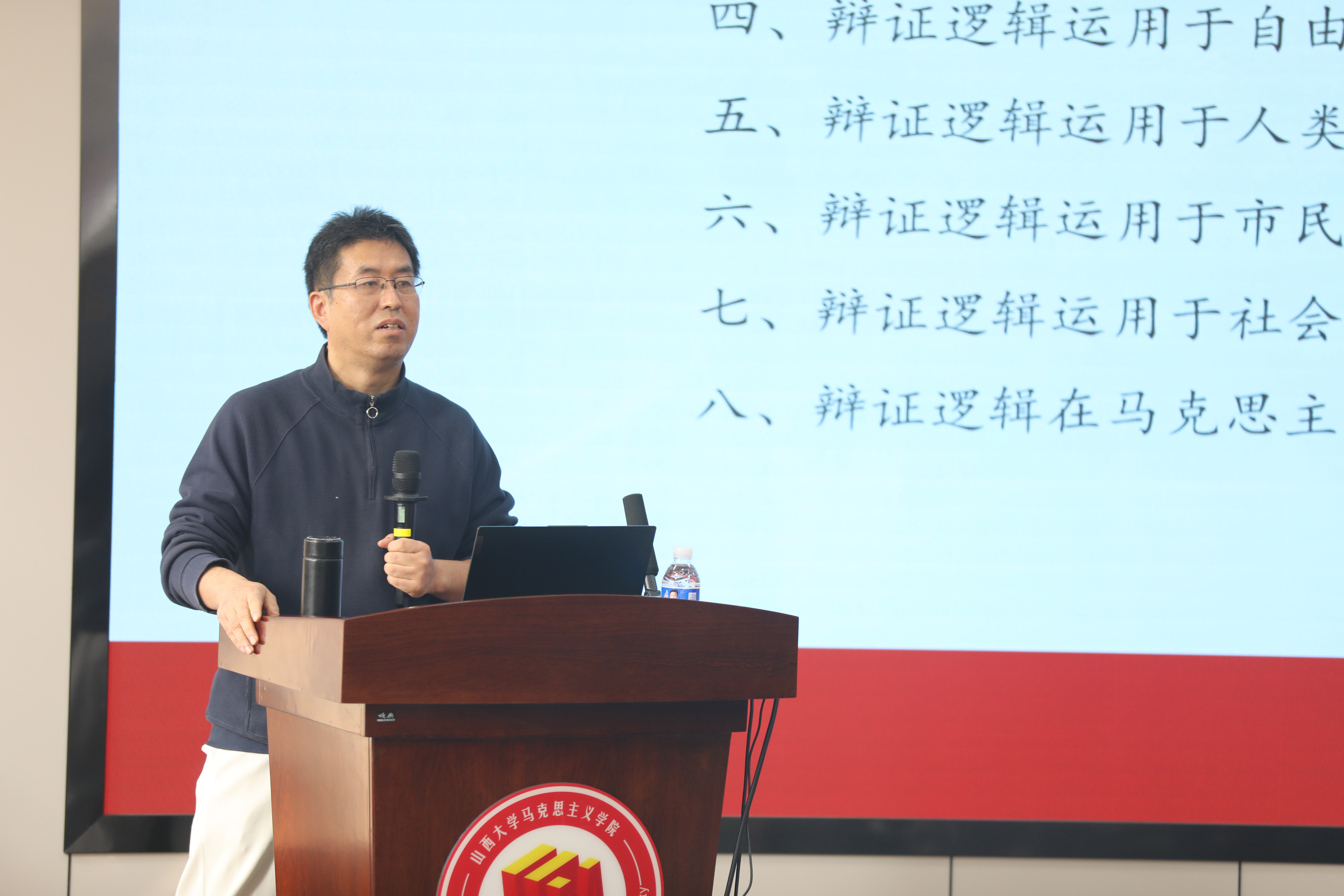 宋朝龙教授报告为在场师生理解马克思主义理论学说发展的整体性逻辑提供了一种新的思路,创新理解马克思主义哲学同西方哲学发展的关系。在互动环节,宋朝龙教授同在场师生交流座谈,围绕主体和客体以及自为的形式和能动的质料的关系为员工继续解答,深刻回答了辩证逻辑在事物变化发展中的作用。
