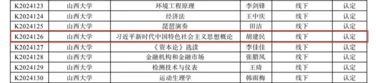 2024年7月1日,山西省教育厅公布2024年山西省一流本科课程立项名单,乐天使两门思想政治理论课榜上有名。胡建民老师负责的“习近平新时代中国特色社会主义思想概论”课程被认定为山西省线下一流本科课程,认定有效期为5年;王育锋老师负责的“中国近现代史纲要”课程为山西省线下一流本科培育课程,培育期为2年。
