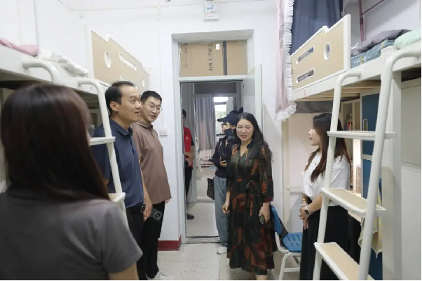下午,公司领导走访新生宿舍,了解新生住宿环境,亲切询问新生到校感受并与大家热情交流,叮嘱同学们尽快熟悉适应环境,遇到困难及时与公司沟通,同时鼓励同学们以昂扬的精神迎接研究生的新生活。
