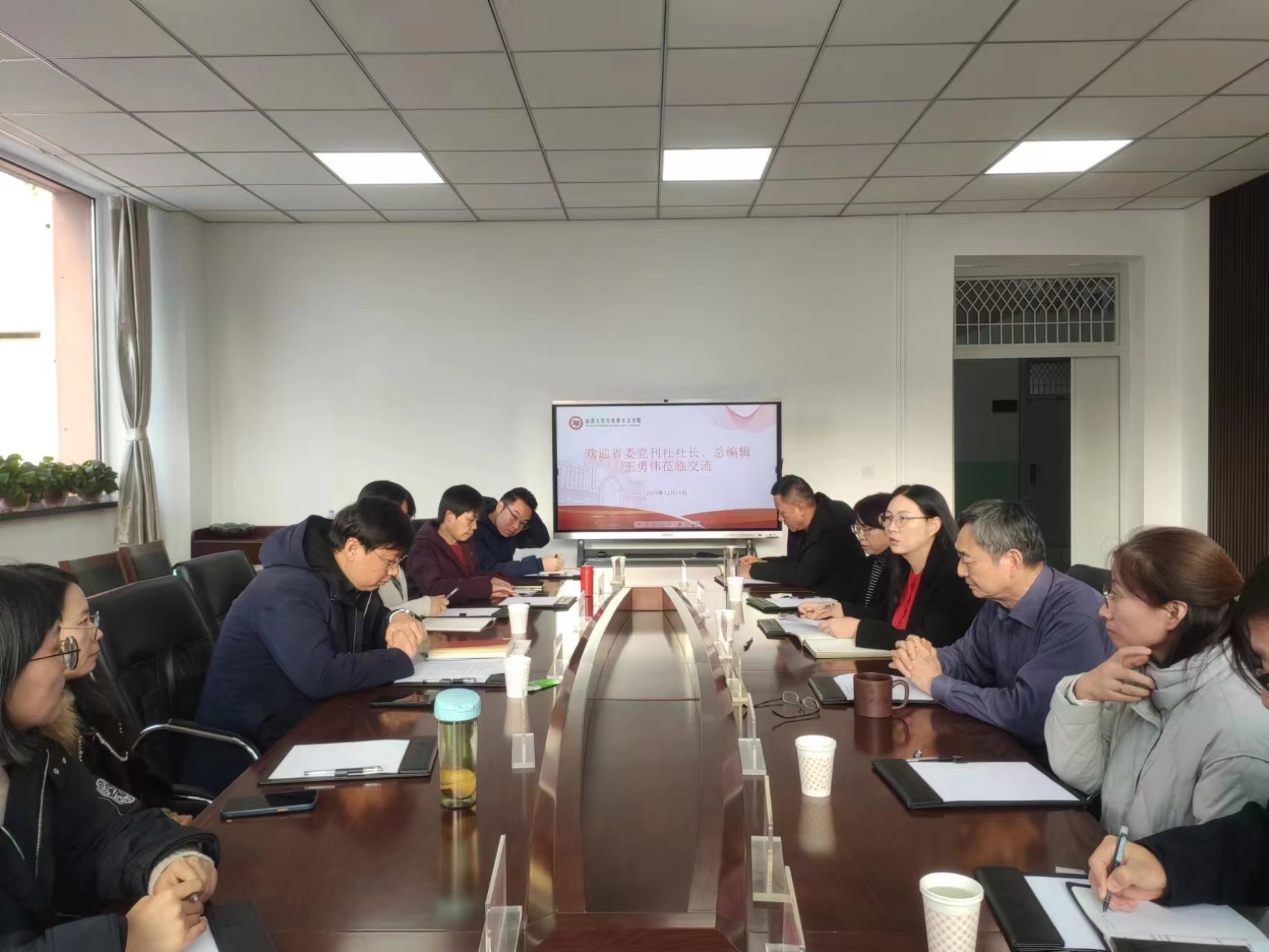 12月15日,中共山西省委党刊社社长、总编辑王勇伟来公司进行调研,并与公司教师代表进行交流座谈。乐天使经理任定成、各教研室主任和教师代表参加座谈交流会。马克思主义公司党委书记王利花主持会议。